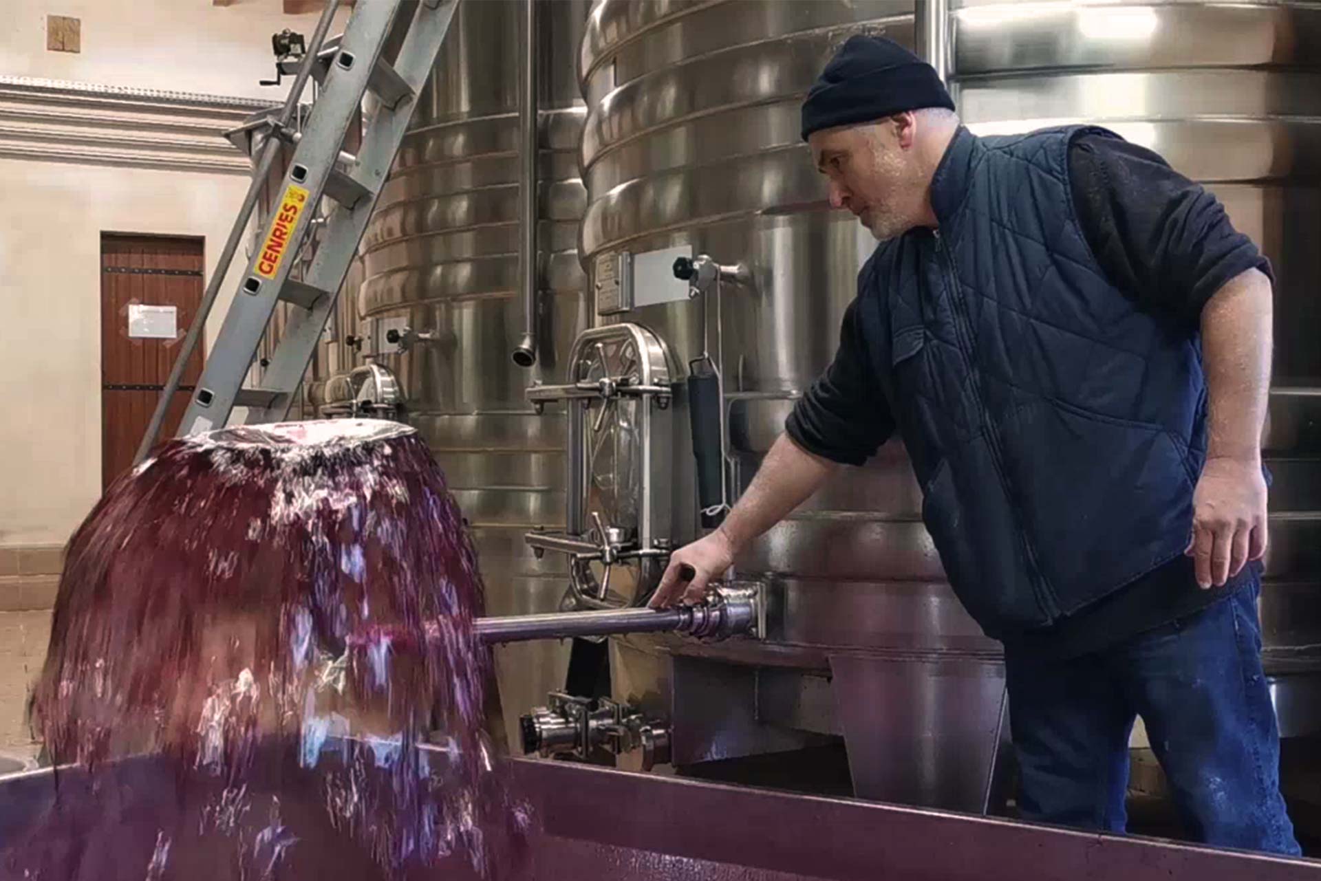 Dans le chai, sous la lumière tamisée de la baladeuse, on extrait le marc de la cuve. La cage du pressoir tourne lentement pour libérer en douceur les quelques gouttes de vins qui s’y cachaient. On pense déjà à la prochaine année et on prépare les sécateurs pour aller tailler.